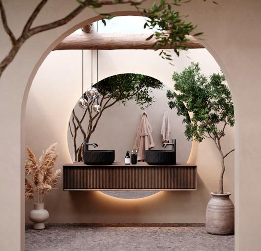 Deze trend omarmt minimalisme, maar met een comfortabele, uitnodigende sfeer. Met strakke lijnen en natuurlijke materialen creëer je een serene, tijdloze badkamer die uitnodigt tot ontspanning. Less is more, maar dan op een smaakvolle manier.