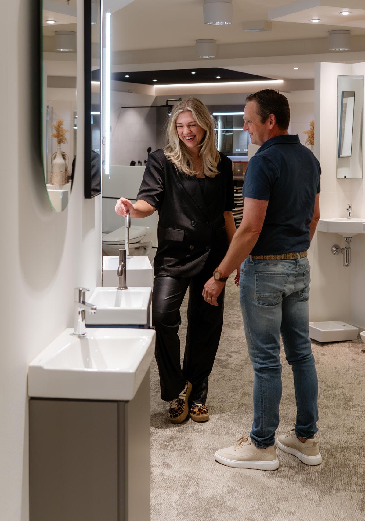 "Klanten verbazen zich er regelmatig over dat het samenstellen van een badkamer helemaal niet zo eenvoudig is. Het is een groot project, waarbij veel komt kijken, zoals het ontwerp, de keuze van producten en materialen, eventuele verbouwingen, leidingwerk, tegelwerk en natuurlijk goede service en garantie achteraf. Daarbij bieden wij hen graag de helpende hand!"