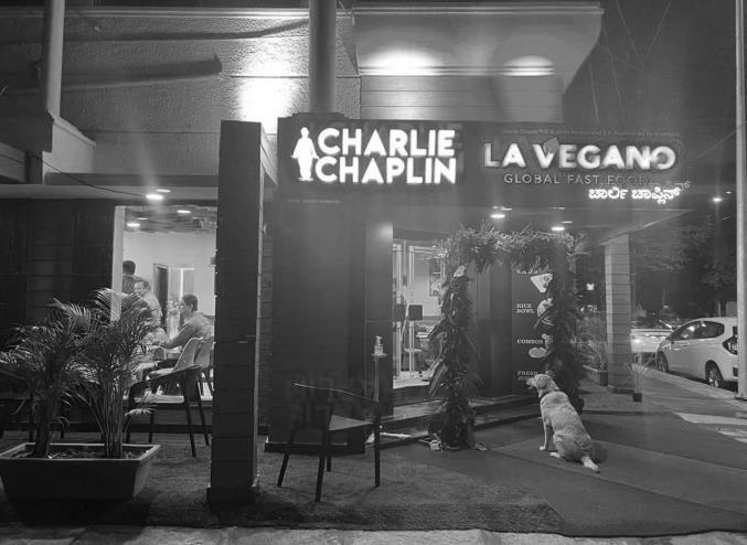 CHARLIE CHAPLIN IS AN EXPRESSION OF BEING BOLD , ODD AND SURREAL. CHARLIE CHAPLIN LA VEGANO IS A VEGAN CHAIN OF RESTAURANT WITH A FRESH AND CREATIVE LOOK. ALL THE MATERIALS CHOSEN ARE VEGAN, THAT CONVEY A STRONG MESSAGE THAT THE RESTAURANT BELIEVES. ELEMENTS OF CHARLIE ARE SPRINKLED ALL OVER THE RESTAURANT , HAT LIGHTS , CANE HANDLES , GEAR CEILING AND A SCREEN PLAYING HIS MOVIES.