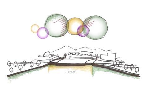 • Wider sidewalks and street furniture