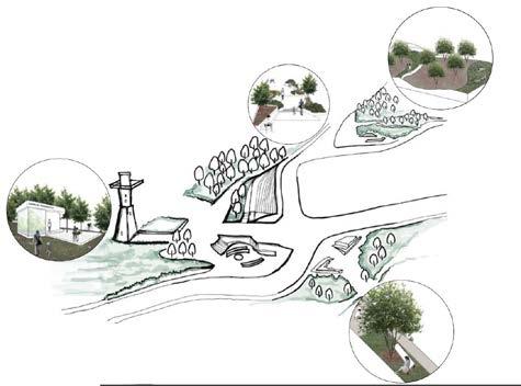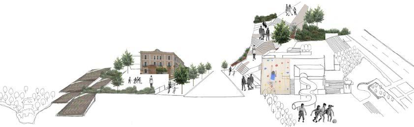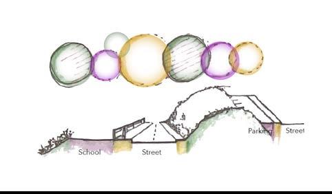 Transforming the parcel of land adjacent to the school ecosystem into a central hub for circulation, integrated with activities for children and a transitional market space within the parking area, serves a dual purpose. This initiative not only establishes a designated area for after-school activities but also converts an initially unwelcoming space into a stepped plaza with pixelated levels designed for playful purposes. These levels gradually ascend the topography, extending into the Bassa Pond, thus crafting an experiential landscape.