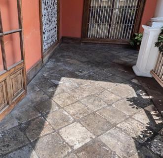 El piso del patio principal ha sidoconcluido con lajas españolas.