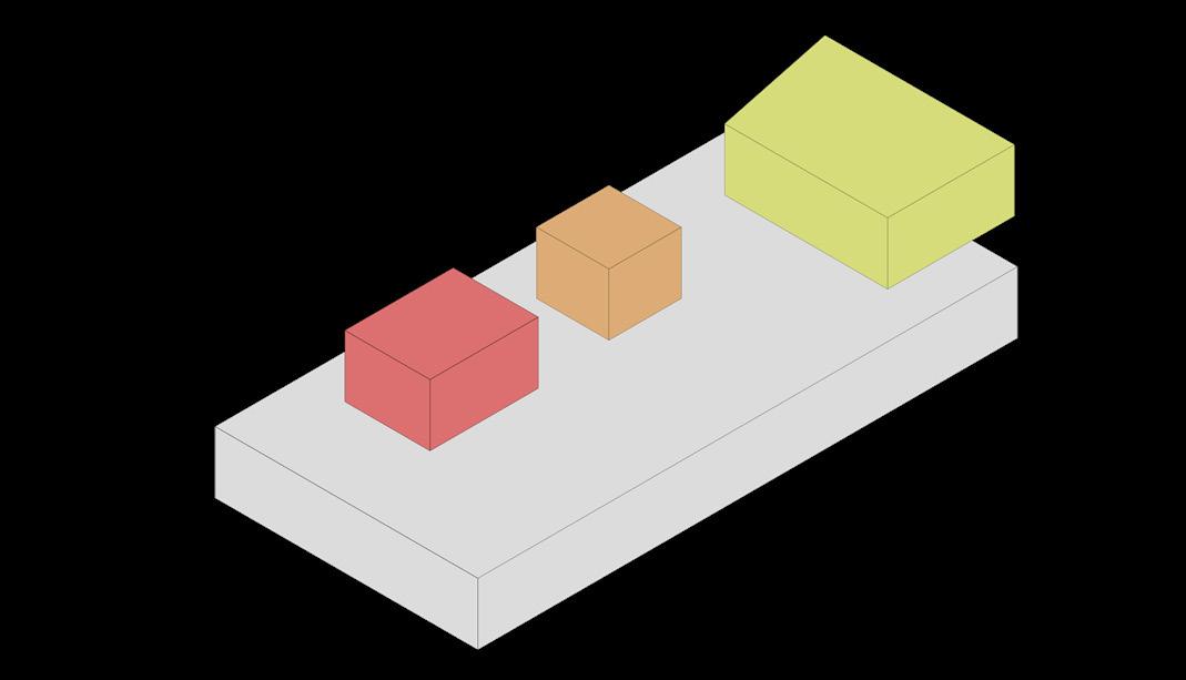 LA COMPOSICIÓN VOLUMETRICA INICIA CON UN PARALELEPIPEDO RECTANGULAR.