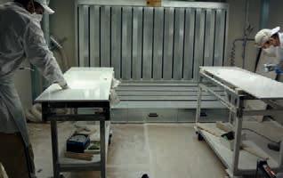 Il pannello grezzo viene inizialmente levigato con carta vetrata grana 180 e successivamente viene applicato uno strato di fondo – poliestere. Dopo una fase di essiccazione della durata di circa 4 ore avviene una nuova levigatura con carta vetrata grana 320. A questo punto il pannello è pronto per la personalizzazione.