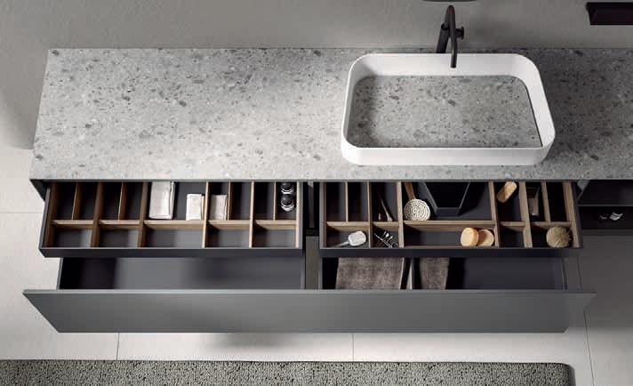 Edoné conceives bathroom design as a wellness experience: it is an environment where each detail is created to meet one’s needs and desires, allowing a full freedom of customization thanks to its extra-wide range of materials, finishes and accessories.