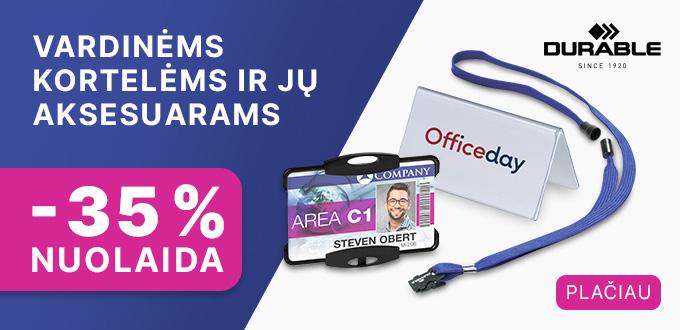 150-00695 Laikiklis vardinei kortelei DURABLE 150-02009 Dirželis vardinei kortelei su plastikiniu apsaugos segtuku DURABLE, (pak. -10 vnt.), tamsiai mėlynas Įdėklas