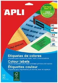 Lipnios etiketės APLI, 210 × 297 mm, A4, 1 lipdukai lape, 20 lapų, raudona