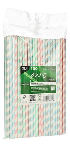 Šiaudeliai PAPSTAR, popieriniai, dryžuoti, lankstūs, D6 mm x 22 cm, 100 vnt