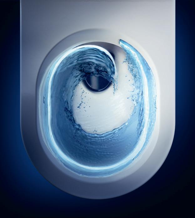 De vernieuwde Architectura toiletten van Villeroy & Boch hebben een innovatieve toiletspoeling: TwistFlush[e3]. Hierbij spoelt een krachtige werveling van water het gehele closet grondig tot bovenaan schoon. Het toilet heeft geen spoelrand en gladde wanden. Slechts 4,5 liter water is nodig voor een grote spoeling en maar 3 liter voor een kleine. Waterbesparend, hygiënisch en efficiënt dus!