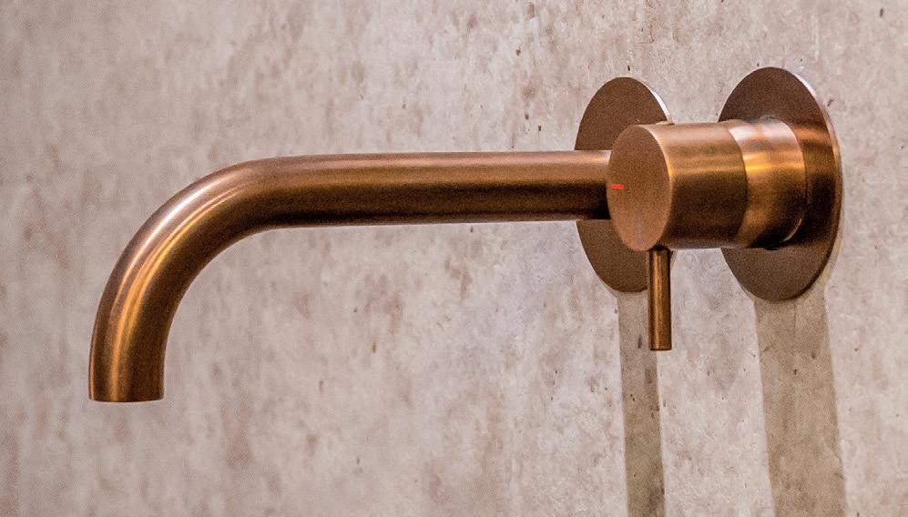 Bronzen kranen versterken de Japandi-stijl op subtiele wijze. Hun warme glans voegt karakter toe aan het ingetogen kleurenpalet en vormt een stijlvol contrast met hout en keramiek. Zo ontstaat een harmonieus geheel dat zowel luxe als rust uitstraalt.