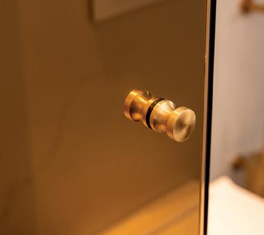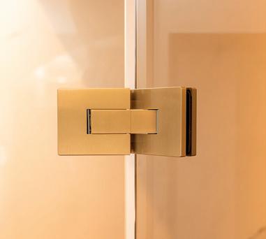 De scharnieren zijn glasvlak aan de binnenkant van de cabine en daardoor eenvoudig te reinigen. Deze scharnieren tillen de draaideur subtiel op bij het openen en zorgen voor een vloeiende beweging. De minimalistische ronde handgreep benadrukt het ingetogen karakter van het ontwerp en biedt tegelijkertijd een comfortabele grip.