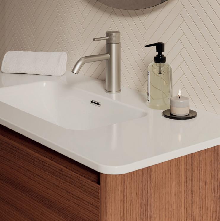De Sunny collectie viert dertig jaar vakmanschap met moderne, afgeronde hoeken en een strak design. Verkrijgbaar in vijf kleuren: mat wit (Ibiza White), zandkleurig (Sahara Sand) en drie houtfineer tinten (Blanc, Roquebrun, Chocolate). Kies uit vier breedtematen (60, 80, 100 en 120 cm) met keramische wastafels die naadloos aansluiten op de afgeronde vormen.