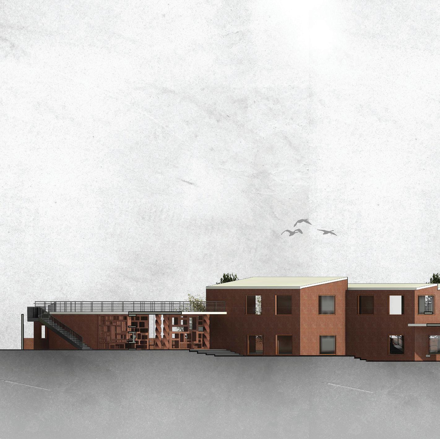 Situated in the heart of Govandi, Mumbai, this project has a primary goal of establishing a secure study environment for children, emphasizing peer learning and student interaction. The incorporation of both public and private courtyards is a fundamental aspect of the design, creating spaces that promote social engagement.The use of brick jali walls introduces a captivating interplay of light and shadow, particularly among the twisted columns.