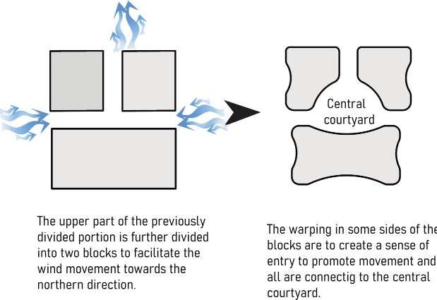 The building form has been shaped to maximize natural energy utilization and enhance thermal comfort based on site conditions, including climate, wind patterns, and shape transformation techniques.