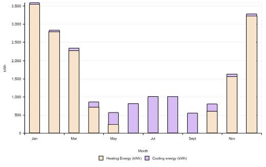 heating and cooling energy consumption a) in Baseline model, b) after the implementation of high performance building materials