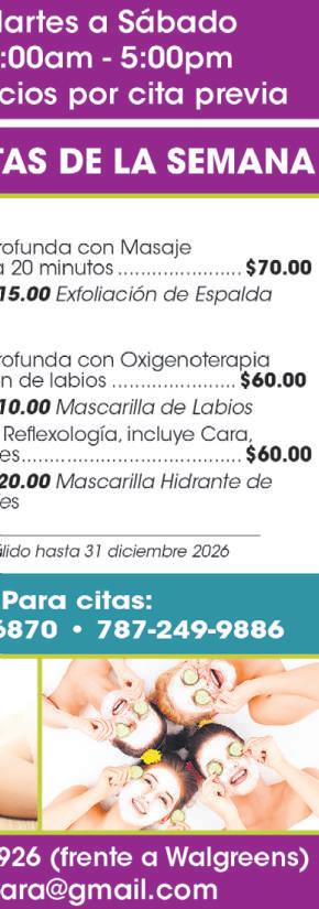 Limpieza Profunda con Radiofrecuencia facial + Mascarilla Hidroplástica de rosa y masaje facial relajante ....... $120.00 Hidrofacial con Radiofrecuencia facial con mascarilla de rosa y masaje facial (cara, cuello y escote) .......................... $125.00