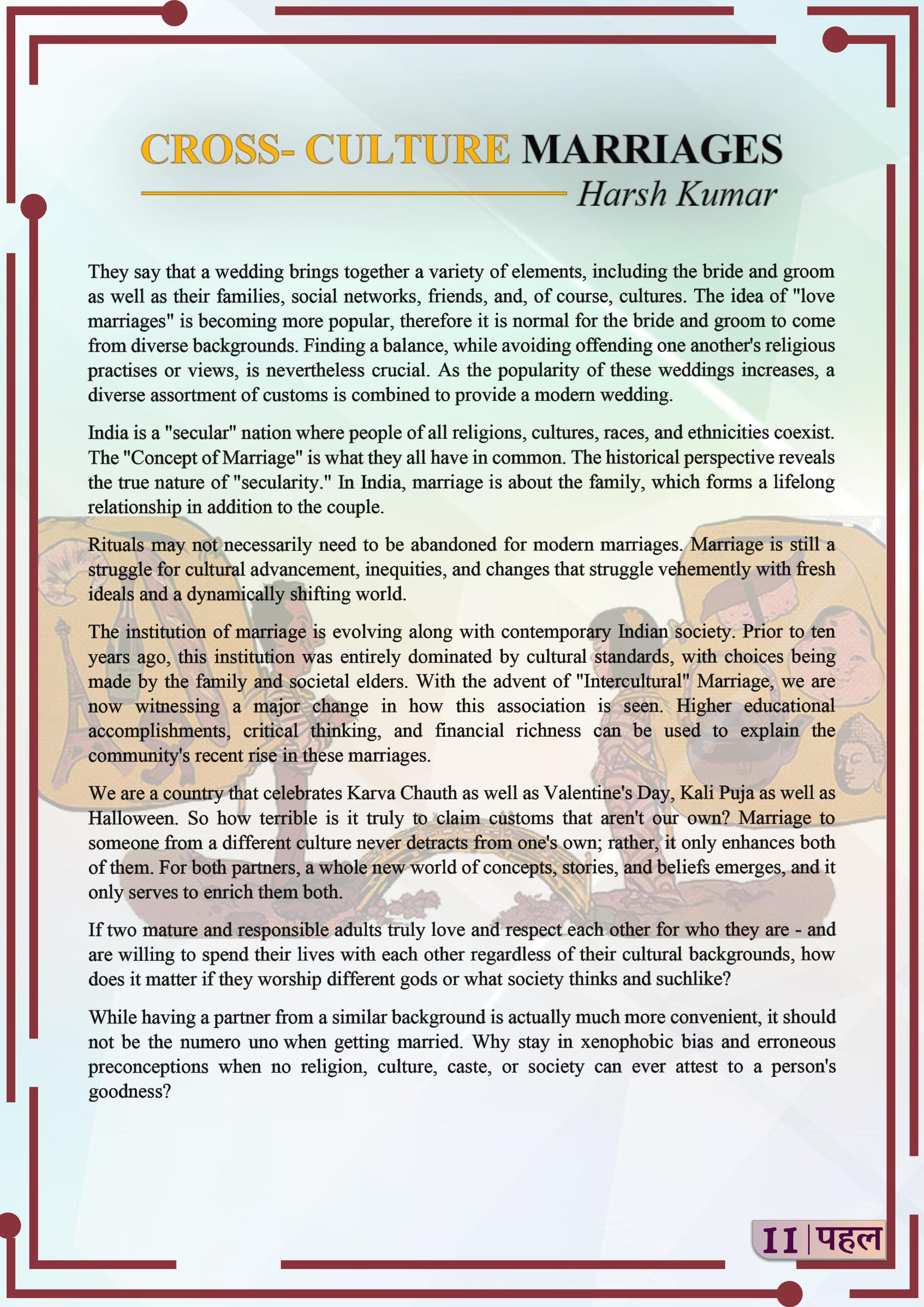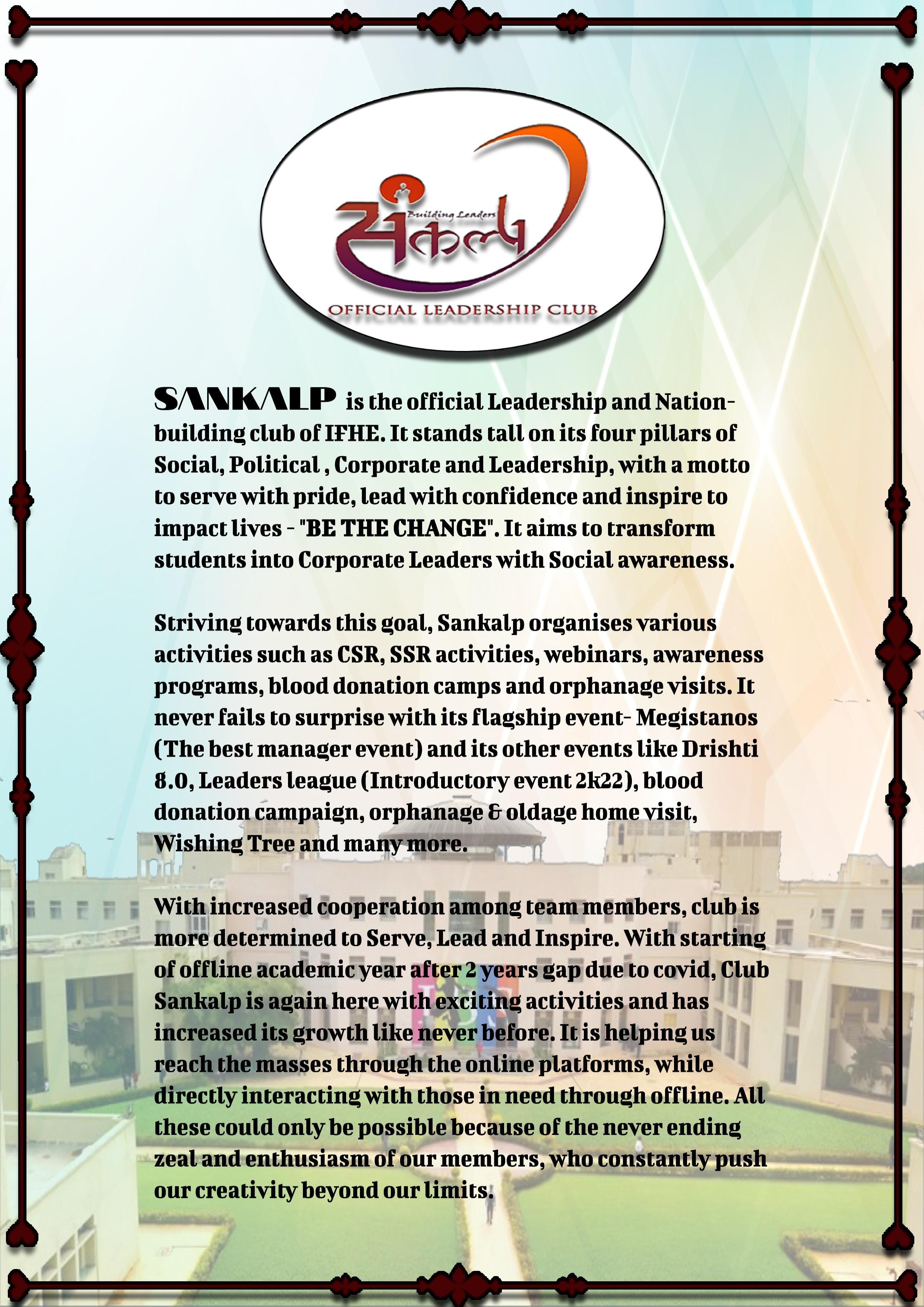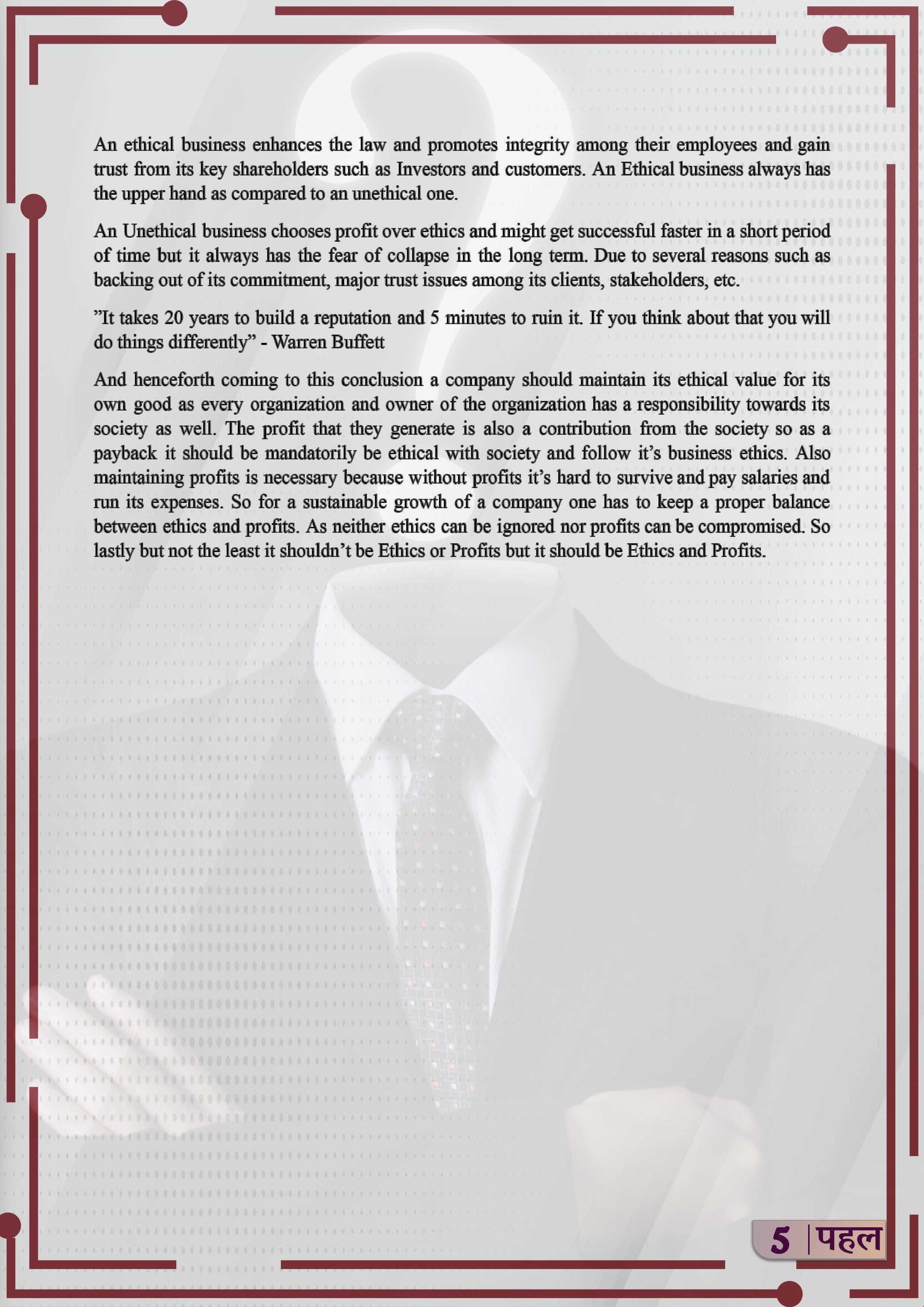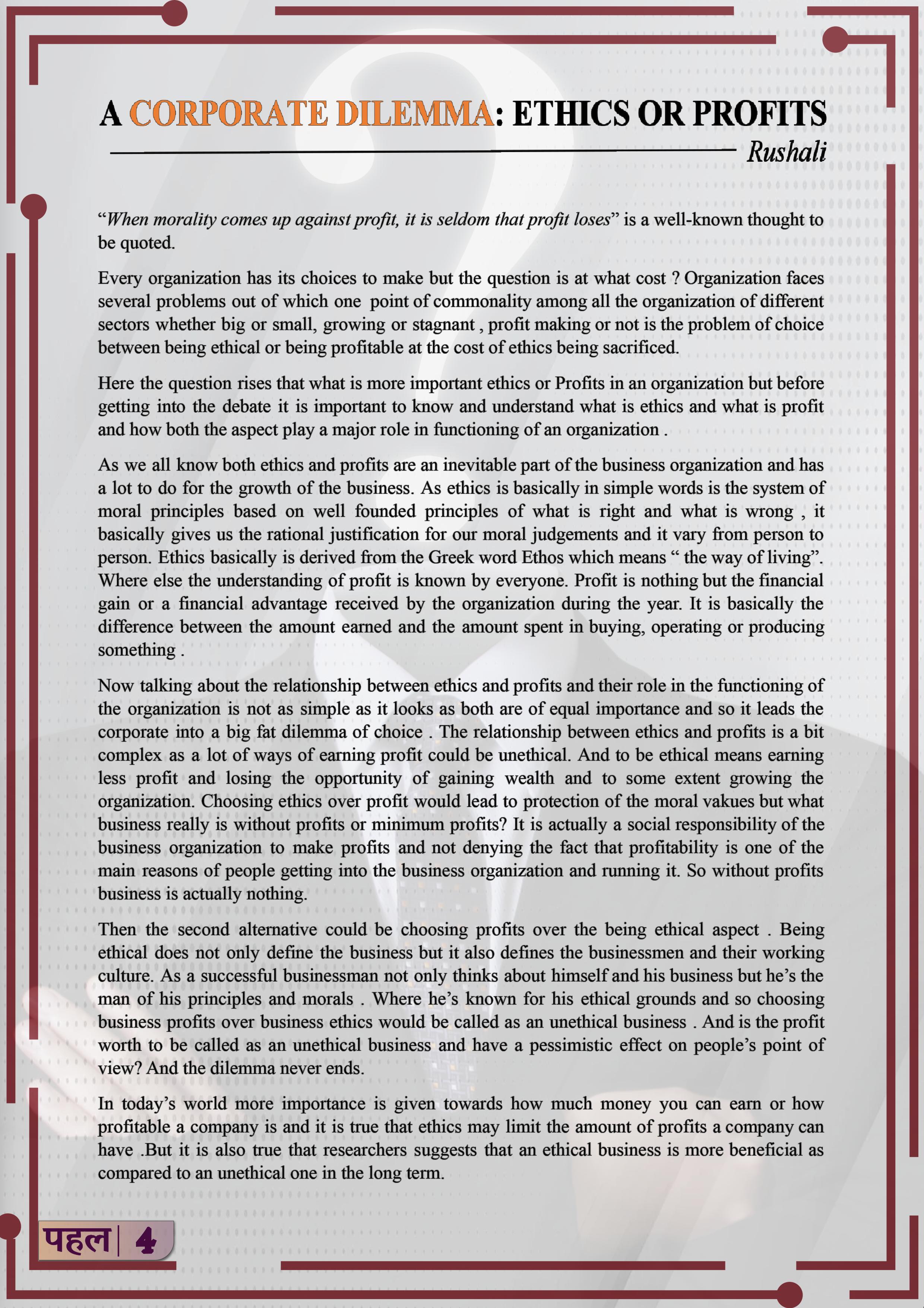 Pehel is the annual magazine of Club Sankalp. It strives to bring to the forefront the various issues related to Social, Political and Corporate sphere and aims to bring about a change in the world and in one's mind. Theme for Pehel 7.0 is Synergy between nature & Business. Pehel is very close to the heart of many and hence I would love everyone to spend few minutes to read this magazine.
