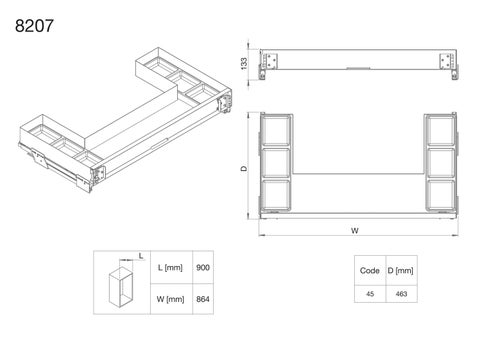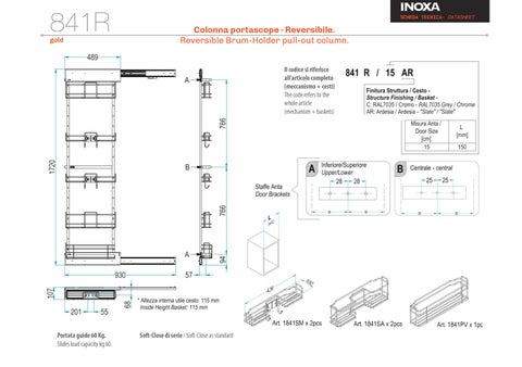 1852MK INOXA玻璃側牆拉籃 詳細尺寸說明書