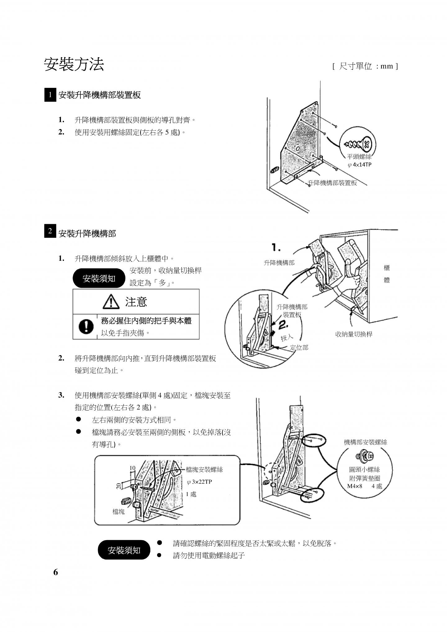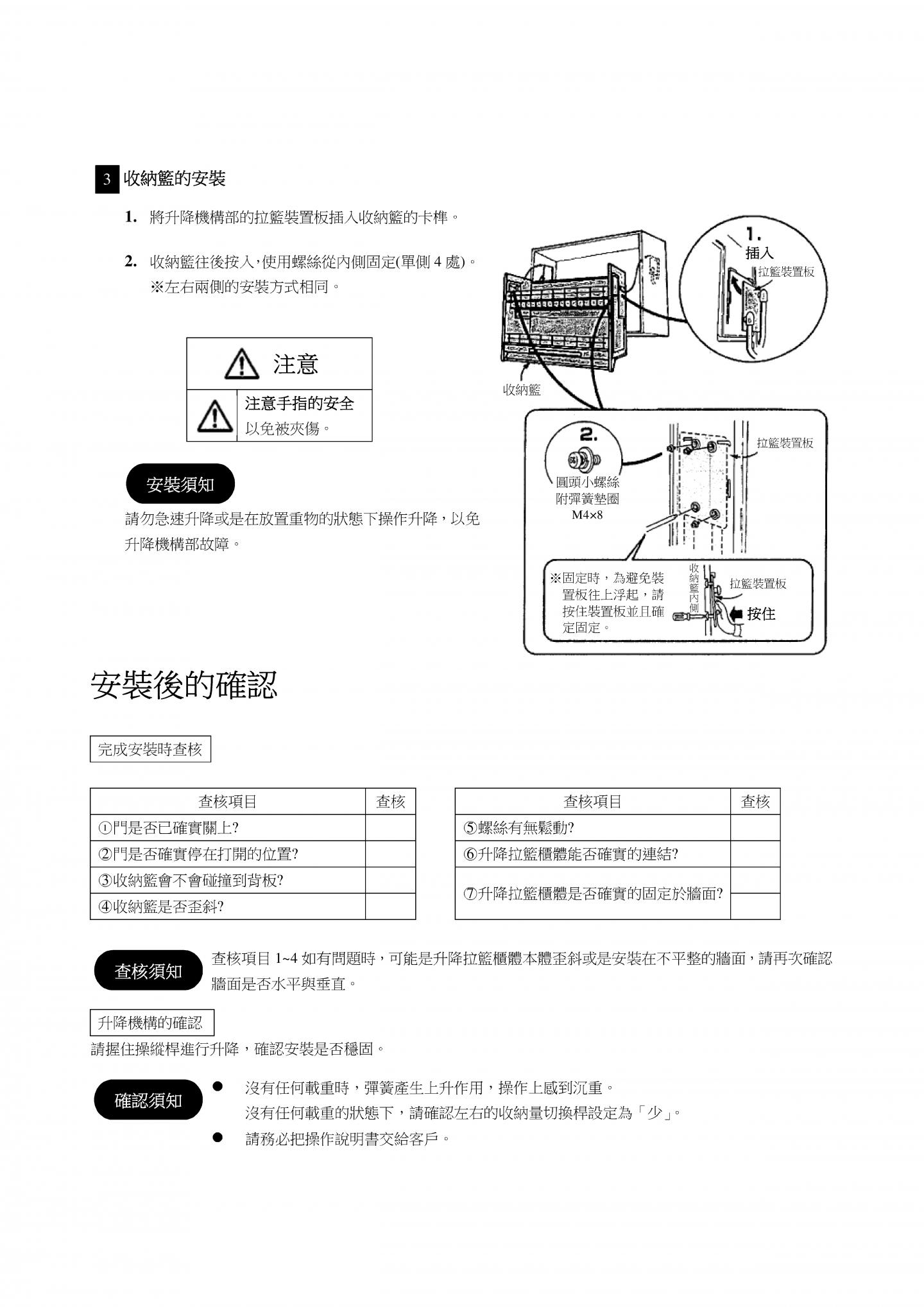 243-F07090 日本進口國際牌昇降櫃 安裝使用說明書