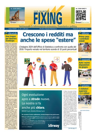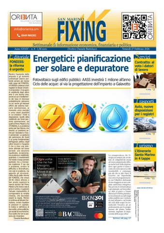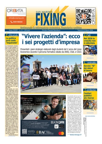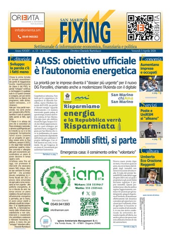San Marino Fixing è il primo giornale economico della Repubblica di San Marino. Fondato nel 1993, ha saputo conquistarsi nel panorama sammarinese e non solo il ruolo di "voce delle imprese". Le nostre indagini economiche e sociali, completate da analisi tecniche sui dati, rendono il giornale uno strumento efficace per imprenditori, manager, istituzioni e politica per compiere le scelte migliori nelle loro aziende e nei loro ruoli decisionali