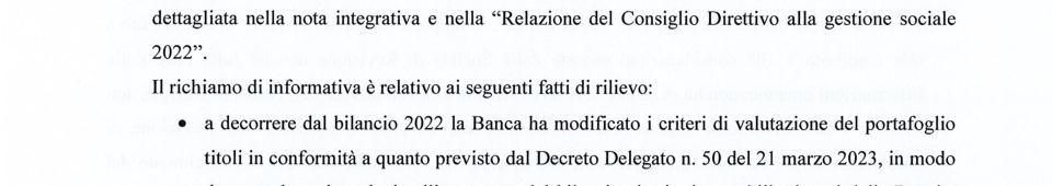Per il portafoglio titoli, come meglio descritto successivamente nella Parte A, Sezione 1 della Nota Integrativa - Illustrazione dei criteri di valutazione – “Obbligazioni e altri strumenti finanziari di debito”, a decorrere dal bilancio 2022 sono stati modificati i relativi criteri di valutazione, in conformità a quanto previsto dal Decreto Delegato n. 50 del 21 marzo 2023, in modo da procedere al graduale allineamento del bilancio ai criteri contabili adottati dalle Banche Centrali appartenenti all’Eurosistema, con conseguente suddivisione del portafoglio titoli obbligazionari al 31/12/2022 in due portafogli, uno detenuto per esigenze di stabilità finanziaria e l’altro costituito dai fondi propri da mantenere fino a scadenza. In particolare, il nuovo criterio del costo ammortizzato consente di stabilizzare il bilancio della Banca Centrale che in passato ha invece alternato significative plus/minusvalenze, a seconda dell’andamento dei mercati finanziari, a fronte di investimenti in titoli per i quali non vi erano dubbi sulla rimborsabilità a scadenza. Ne derivava una indebita volatilità dei risultati economici di periodo non consona al ruolo di un Istituto centrale che deve fungere da riferimento sistemico per la stabilità finanziaria.