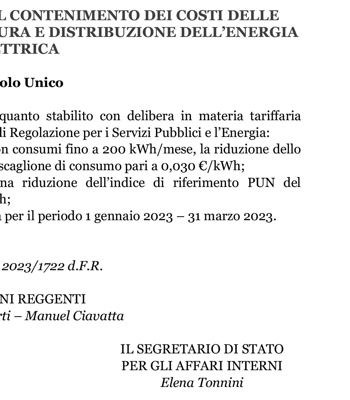 stimabile in un 17-20% in meno per tutte le utenze per i cittadini e per le imprese” anche