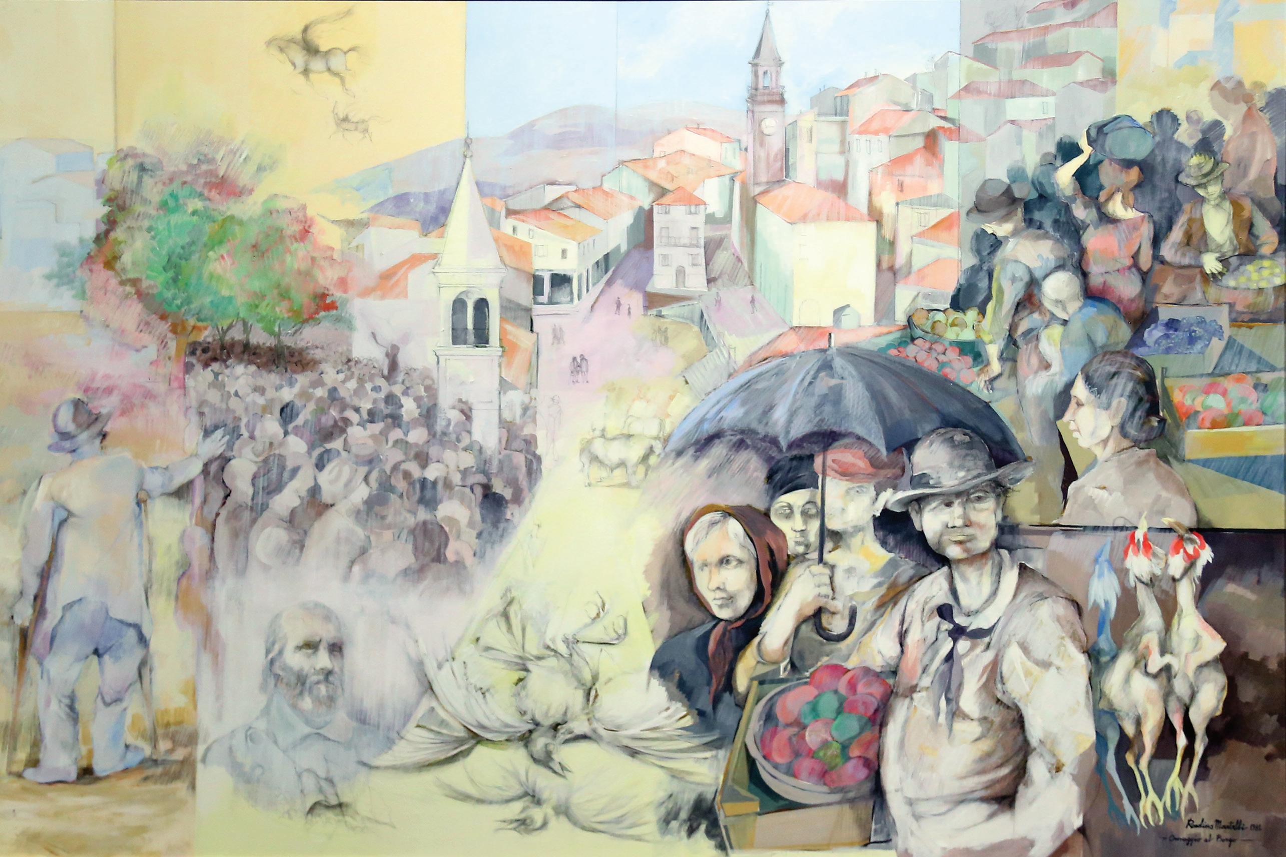 acquerelli che esaltano la sua abilità nel tratto e la sua attenzione ai dettagli. Con oltre 50 anni di intensa attività artistica, Martelli ha saputo spaziare con successo tra diversi mezzi espressivi, tra cui la pittura, la ceramica, l’illustrazione e l’incisione. La sua opera si caratterizza per un continuo desiderio di esplorare le possibilità espressive e tecniche, mantenendo sempre un forte legame con temi universali come la vita, la natura e la realtà. Oltre alle sue creazioni visive, Martelli ha intrapreso anche suggestive incursioni nel mondo letterario, contribuendo con scritti e riflessioni che arricchiscono la sua figura di artista e intellettuale, in un dialogo creativo tra pittura e scrittura in chiave sociale e solidale con un linguaggio universale.