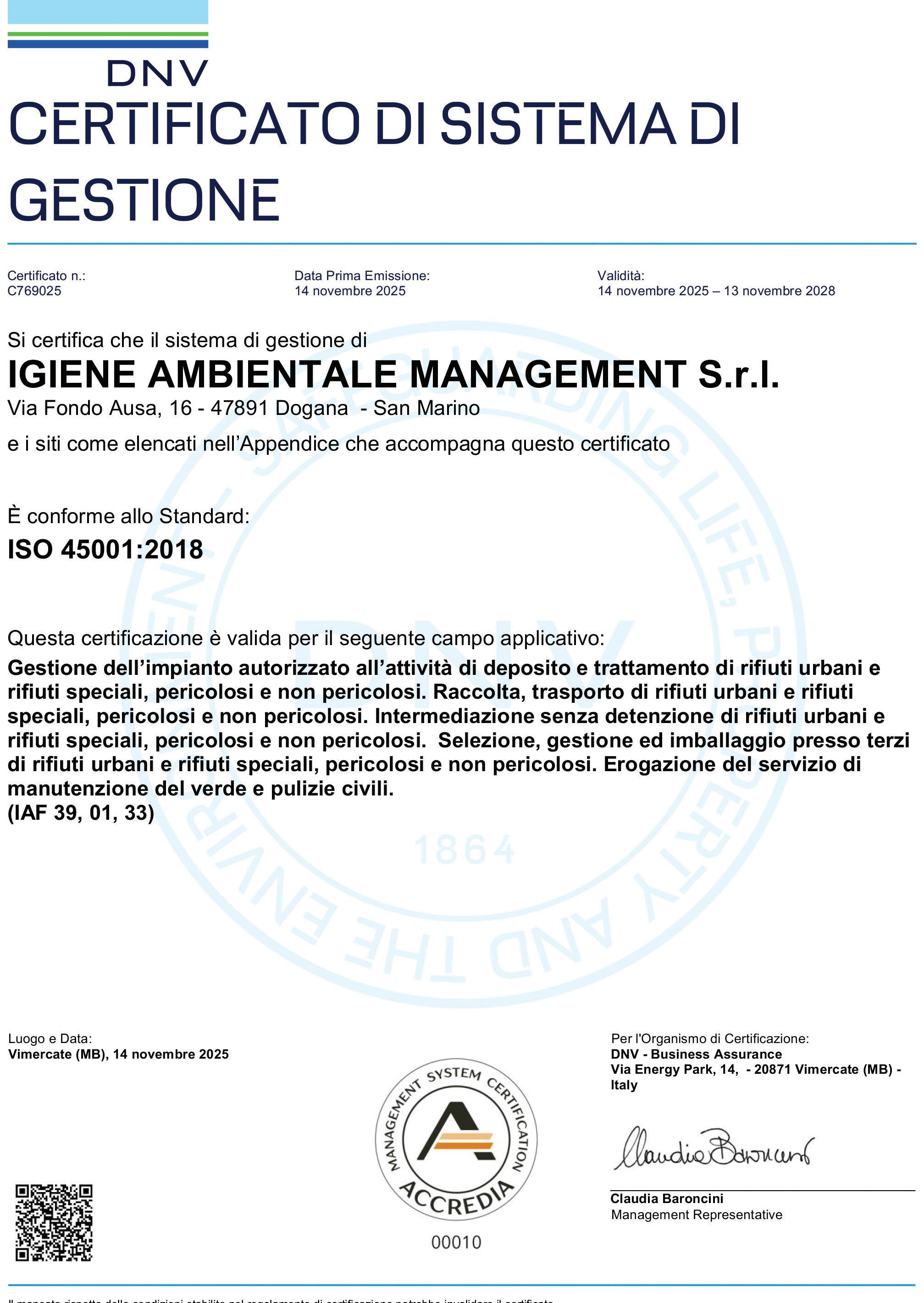 “Il percorso su cui ci stiamo muovendo va nella stessa direzione verso cui tutto il mondo, Italia ed Europa in primis, si sta spostando. Questa consapevolezza”, spiega Mirkare Manzi, amministratore di IAM srl, “non è data solo dalle norme, che si stanno aggiornando in questo senso anche a San Marino, ma dalle evidenze che ogni giorno riscontriamo sul mercato, dove aziende, dipendenti e istituzioni sono sempre più coinvolti nel raggiungimento della piena sostenibilità ambientale, economica e sociale. Ed è in questo senso che la gestione della sicurezza è fondamentale, al pari della gestione ambientale e della qualità, che strategicamente abbiamo scelto di farci certificare”.