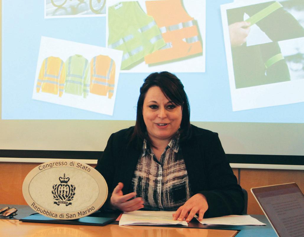 mente” e si va nel Penale (articolo 405). Una “piaga” che riguarda anche il Titano: in tre anni (dal 2020 al 2022) sono stati ritirati 22 contrassegni alterati e utilizzati indebitamente e sono state erogate 478 sanzioni per sosta irregolare nei posti riservati. La seconda, importante novità – messa in campo, ha detto la Segretaria di Stato, “per allinearsi alla normativa italiana – riguarda gli indumenti catarifrangenti visibili anche quando cala la luce. “Nel nostro territorio, segnala l’UPECEDS, il 7,2% dei sinistri lesivi coinvolge pedoni e ciclisti” ha ricordato. Da mezz’ora dopo il tramonto del sole a mezz’ora prima del suo sorgere e, comunque, ogni qualvolta sussistono condizioni di scarsa visibilità, i ciclisti devono utilizzare i dispositivi di se-