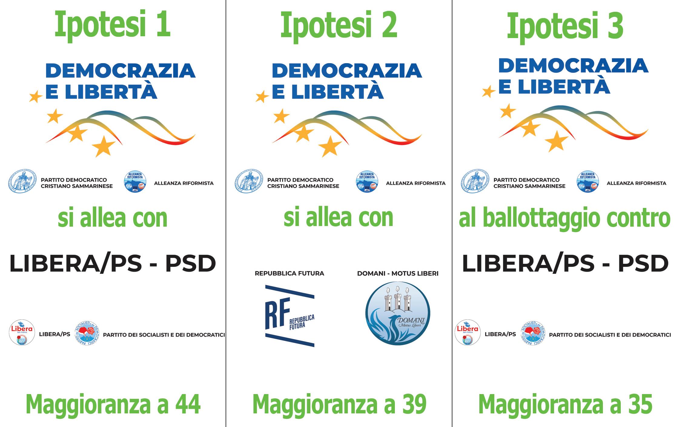 La coalizione PDCS-AR ha vinto le elezioni, conquistando in totale 26 seggi e, soprattutto, la possibilità di scegliere con chi costruire la prossima maggioranza di governo. A conti fatti, del resto, non esistono incastri senza la DC, per cui le ipotesi da “consultazioni in corso” sono sostanzialmente due: o l’accordo con l’altra coalizione LIbera/ PS-PSD per una maggioranza a 44 (solida ed “europeista”), o l’accordo con Repubblica Futura e Domani-Motus Liberi per una maggioranza a 39 (ma con il baricentro molto più spostato verso la DC).