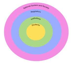 The next layer represents universities and colleges. INe allows institutions to diversify their student cohorts, share faculty and curricular strengths, collaborate on joint and progression pathways, and extend their academic footprint beyond geographical boundaries. Instead of capitalheavy branch campuses, institutions can leverage mobility partnerships to enhance visibility, quality, and competitiveness.