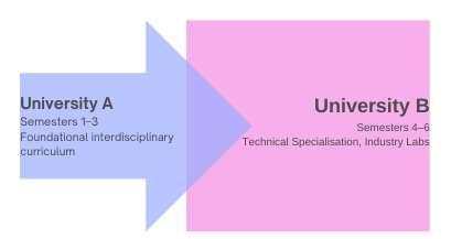undergraduate degree between two institutions. months (3 semesters) at another 18 months (3 University B, enabling an experience (Fig 2) curriculum alignment are model enables deeper shared faculty input, multidisciplinary pathways.