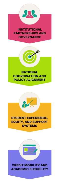A coherent mobility system requires nationallevel alignment with regulatory frameworks such as the Academic Bank of Credits (ABC), the National Credit Framework (NCrF), and NEP 2020. National coordination ensures uniform standards, transparency in credit transfer, and inter-state portability of academic records. By establishing policy clarity, common digital infrastructure, and financial or administrative incentives, India can enable mobility at scale while ensuring equity and consistency across regions and institutions. the primary challenge here is ensuring seamless policy coherence and operational synergy between Central, State, and private regulatory frameworks. National coordination must actively mitigate administrative burdens that could otherwise slow inter-state academic record portability.