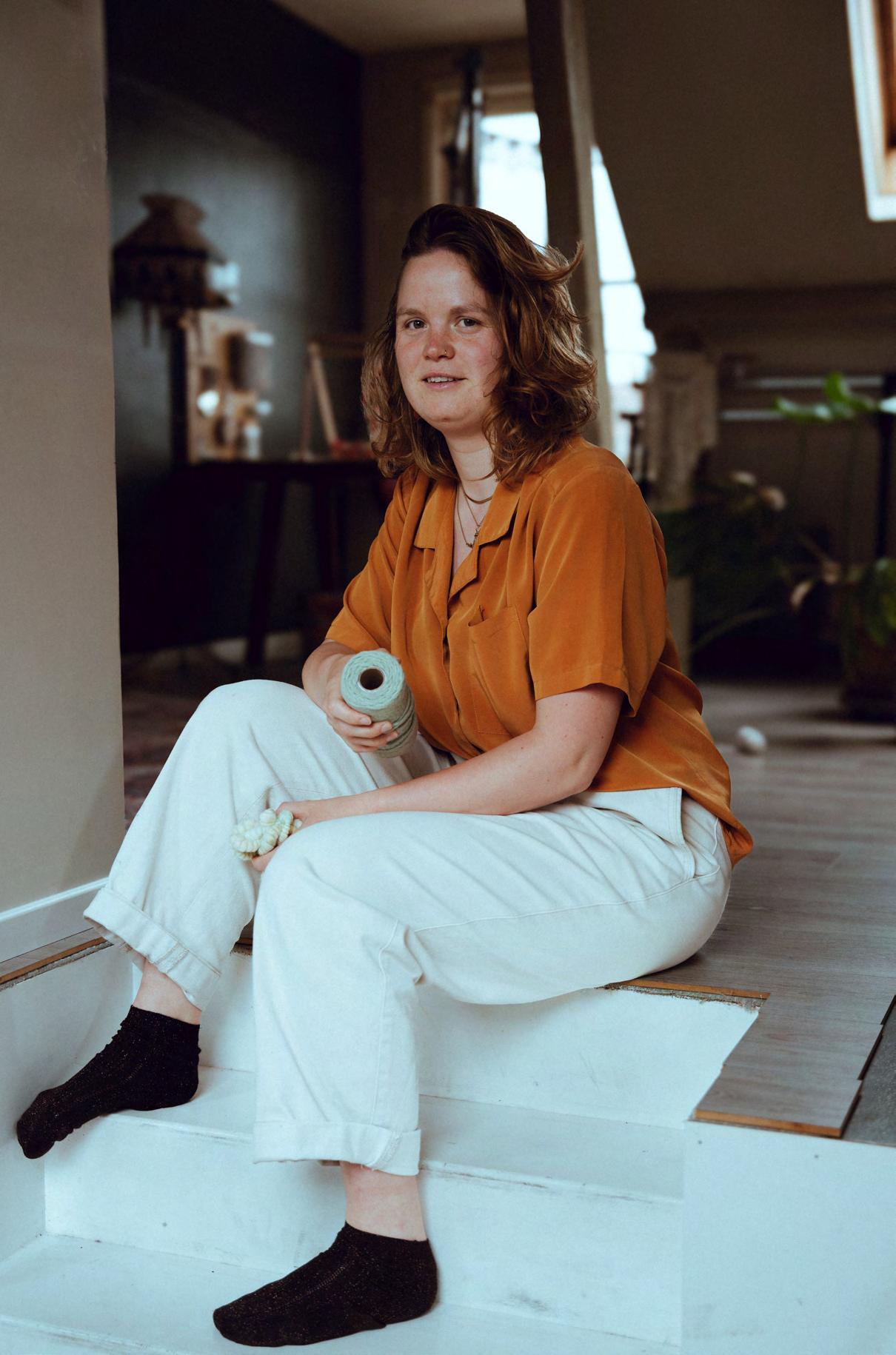 “Ik wil meer te weten komen over de ambacht op zich. Ik zou graag zelf leren spinnen en kaarden, om mijn eigen wol te kunnen maken. Met kaarden kan je kleuren en materialen mengen. Mijn eigen garen leren spinnen, dat is ook wel een droom, maar niet zo evident. Eigenlijk wil ik dat het hele proces, van begin tot einde, door mijzelf gemaakt is. Ik zou ook wel een eigen atelier willen in het centrum van Brugge. Om andere makers te leren kennen of een pop-up shop te kunnen doen samen met anderen. Het duurde even voor ik me comfortabel voelde bij het delen van mijn werk, maar toen anderen interesse kregen om werk te kopen of bestellen op maat, werd ik een stuk zelfverzekerder.”
