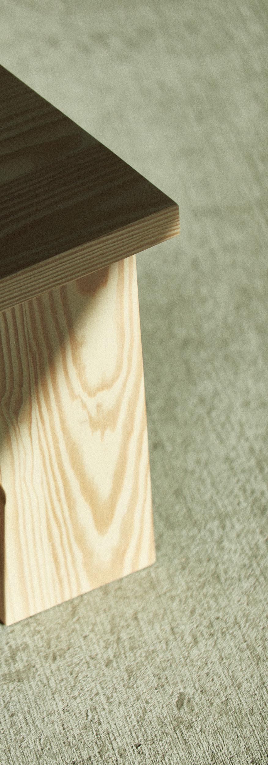 ‘Zelf ga ik heel graag wandelen in bossen. Hout is zo’n natuurlijk product met oneindig veel mogelijkheden. Een boom op zich is massief en tegelijkertijd fragiel. Je kunt je verdiepen in het materiaal, elk onderdeel gebruiken en hergebruiken. Zelfs het houtafval heeft nut en kan bijvoorbeeld in de verwarming of op de composthoop. In de toekomst hoop ik met meer lokale boomsoorten te werken, maar hout moet nu eenmaal enkele jaren drogen voordat je ermee aan de slag kan. Nu gebruik ik vooral Amerikaanse en Europese soorten, afhankelijk van het project en de kwaliteit. Omwille van mijn materiaalkeuze hoeft niet elke collectie trouwens een functioneel nut te hebben, hoewel dit hier nu wel het geval is. Ik vind het vooral fijn dat je erin kunt zien wat je wil.’