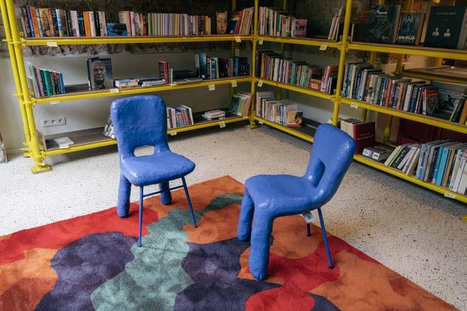Enkele Brugse creatievelingen mochten mee hun stempel drukken op de winkelinrichting. Zo transformeerden Sanne De Muynck en Janne Helewaut oude meubels en Kringwinkelvondsten tot unieke poefs, tapijten en stoelen. Broes Vanmullem gaf afgedankte baches een nieuw leven als gordijnen voor de pashokjes, terwijl David Carney en Serge Bullaert van Vonkfabriek oude stellingkarren omtoverden tot robuuste werktafels voor de workshophoek.