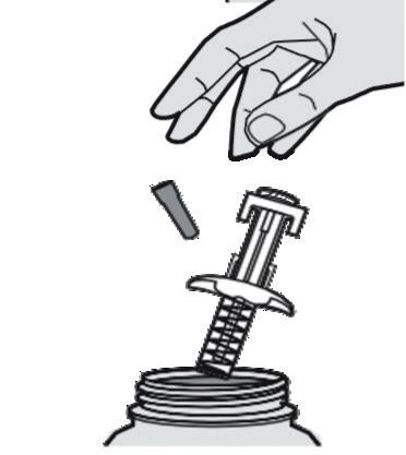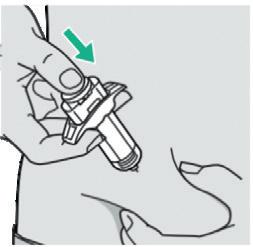 Fjern kanylehætten med den anden hånd ved at trække vandret væk fra dig, så du ikke risikerer at røre kanylen. Du må ikke sætte kanylehætten på igen.