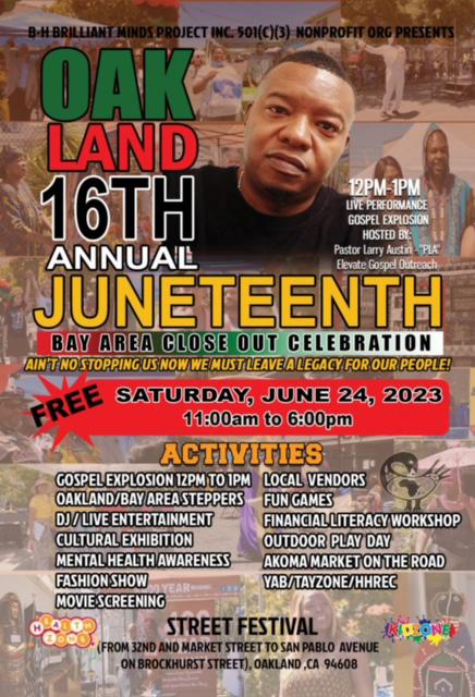 Oakland Juneteenth Closes out Bay Area Juneteenth celebrations. Learn more! 3