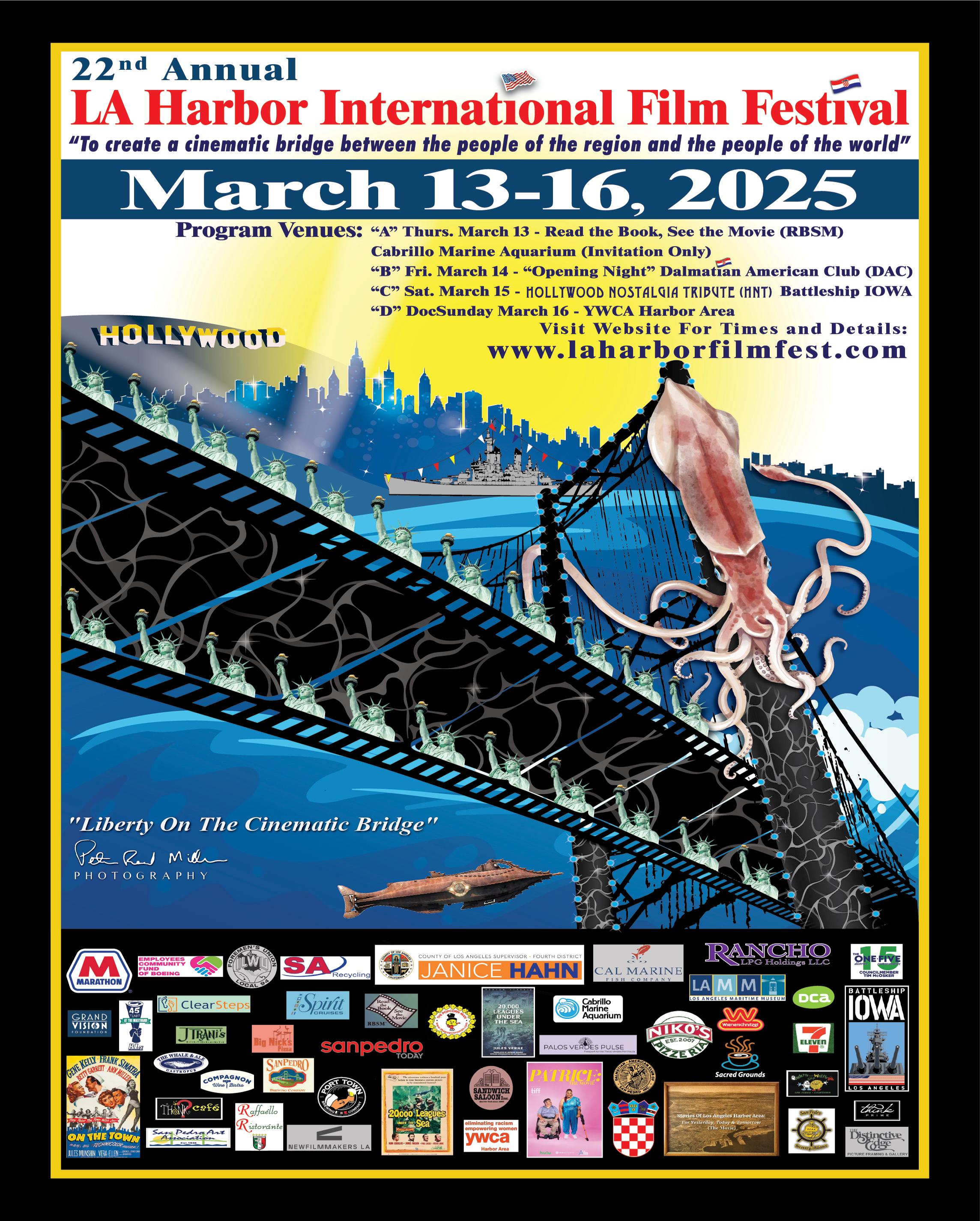 13-16 (Thurs-Sun) – 22nd ANNUAL LA HARBOR INTERNATIONAL FILM FESTIVAL at various locations, various times. – This year’s LA Harbor International Film Festival will take place at various venues. The program includes the annual “Read the Book, See the Movie” screening at Cabrillo Marine Aquarium (3710 Stephen White Dr.), Opening Night at the Dalmatian-American Club (1639 S. Palos Verdes St.), Hollywood Nostalgia Tribute at the Battleship Iowa (250 S. Harbor Blvd.), and “DocSunday” at YWCA Harbor Area—Julia Morgan Auditorium (437 W. 9th St.). For the full schedule and reservations, visit laharborfilmfest.com.