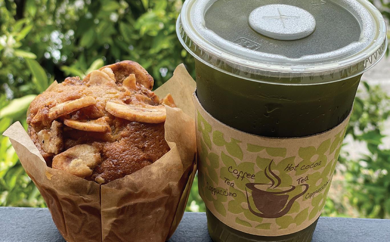 their mint iced tea. I recently tried the hot version of Glow (mint and citrus) and limoncello teas, which were both good. I love their banana muffin topped with banana chips to satisfy my need for something sweet. Before getting to that blissful experience of enjoying one’s tea and muffin, though, when ordering, one must be explicitly clear about desiring a ceramic mug and the banana muffins with the chips on top; otherwise, drinks are poured in to-go cups and you’ll most likely get a regular banana muffin. Also, depending on who works the counter, you might be served your tea in a mug or a teapot.