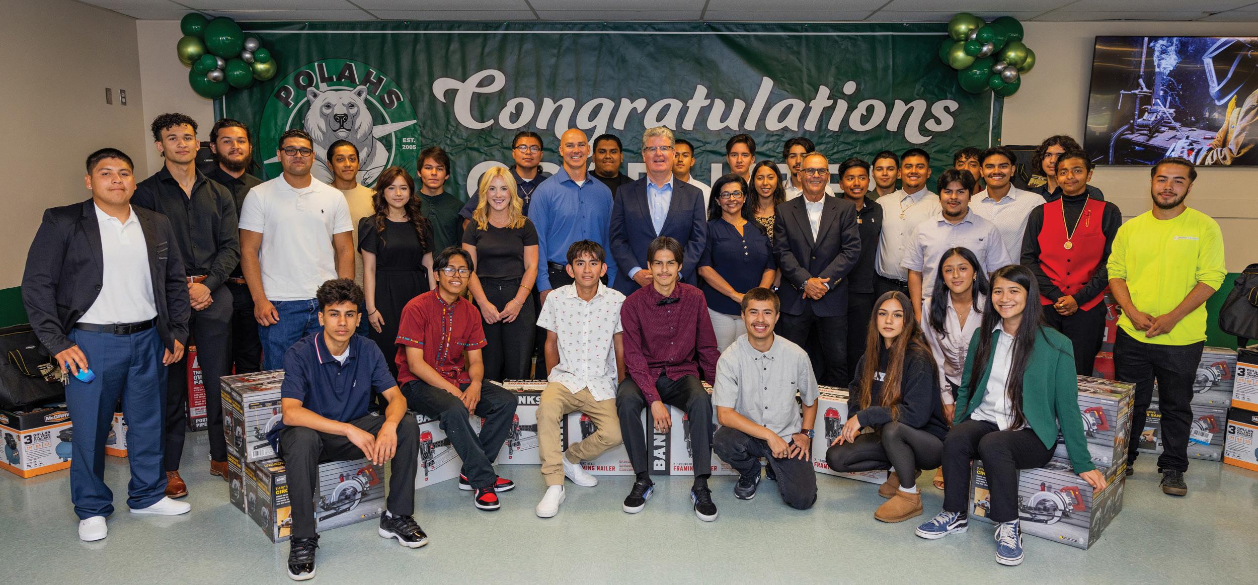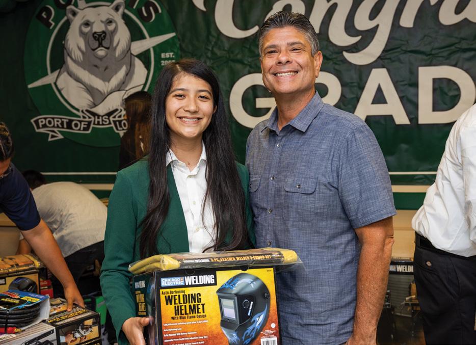 ON FRIDAY, JULY 21, Port of Los Angeles High School held its 2023 Summer Skilled Trades Graduation, celebrating students who completed the school’s six-week training program, which trains students in four trade skills: welding, pipe welding, construction, and plumbing. Through a grant from Harbor Freight Tools for Schools, POLAHS has offered a Skilled Trades Summer Program for the past three years. The six-week program has grown from 24 students during their first year to approximately 75 students and alumni. Students have priority entry into the local Southwest Carpenters Union apprenticeship program and job opportunities with other industry partners. Graduates received a complete set of gifted tools and personal protective equipment to begin work in their trade. The comprehensive summer program included a team of staff members from POLAHS, the Boys & Girls Club, Dynamic Education, and funding support from Harbor Freight Tools for Schools.