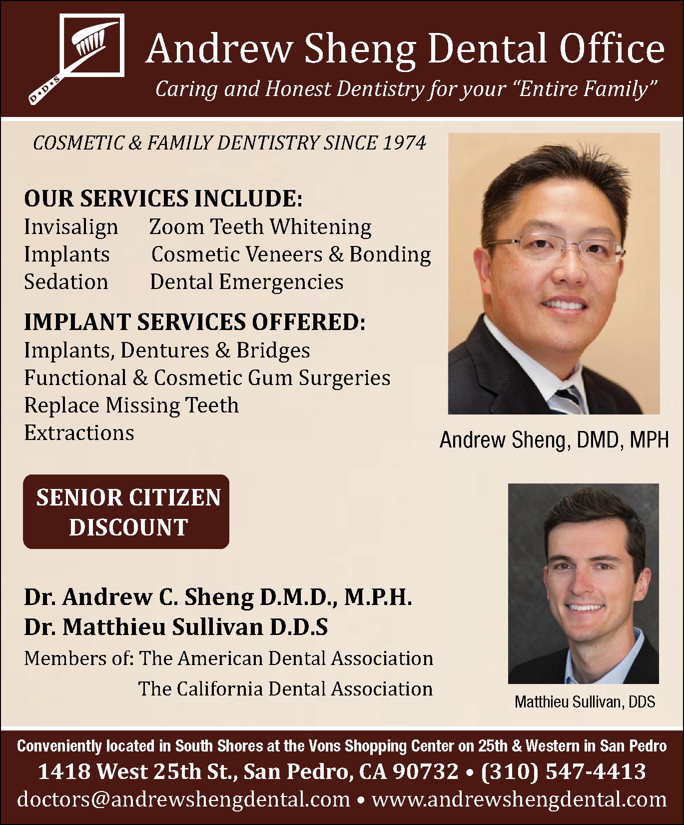 sanpedrotoday.com I AUGUST 2023 I SAN PEDRO TODAY I 33 Assisted Living Services Amenities • Medication Management • Showering and Dressing • Personal Laundry • 24-hour Caregiver Support with Well-Trained and Dedicated Staff • Restaurant-style Meals • Daily Housekeeping • Transportation • Full Calendar of Social, Educational, Cultural Activities and Events • In-House Beauty Salon and Barbershop (310) 547-0090 435 W. 8th St. San Pedro HarborTerraceRetirement.com License #198200855 570 W. 5th Street San Pedro, California 90731 (310) 832-9131 #FD418 www.mcnerneysmortuary.com 815 S. Averill Ave., San Pedro, CA 90732 (310) 784-8867 www.raymondgreenlawoffice.com rgreen.atty@sbcglobal.net PLANNING FOR PEACE OF MIND Estate Plans • Probates • Wills • Living Trusts Power of Attorney • Real Estate Raymond D. Green Attorney at Law 30 years of service in the San Pedro & South Bay area “Free 30 Minute Consultation with Mr. Green”