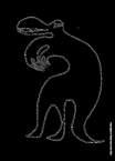 La mirada de Gonzalo es diferente. Sus dibujos son de un solo trazo, representando el espacio del objeto no los detalles del contorno. Cuando dibuja, lo hace sin referentes, directamente de su cabeza al papel. Con una imaginación sorprendente va plasmando distintos animales, narrando historias y enlazando sus ideas.
