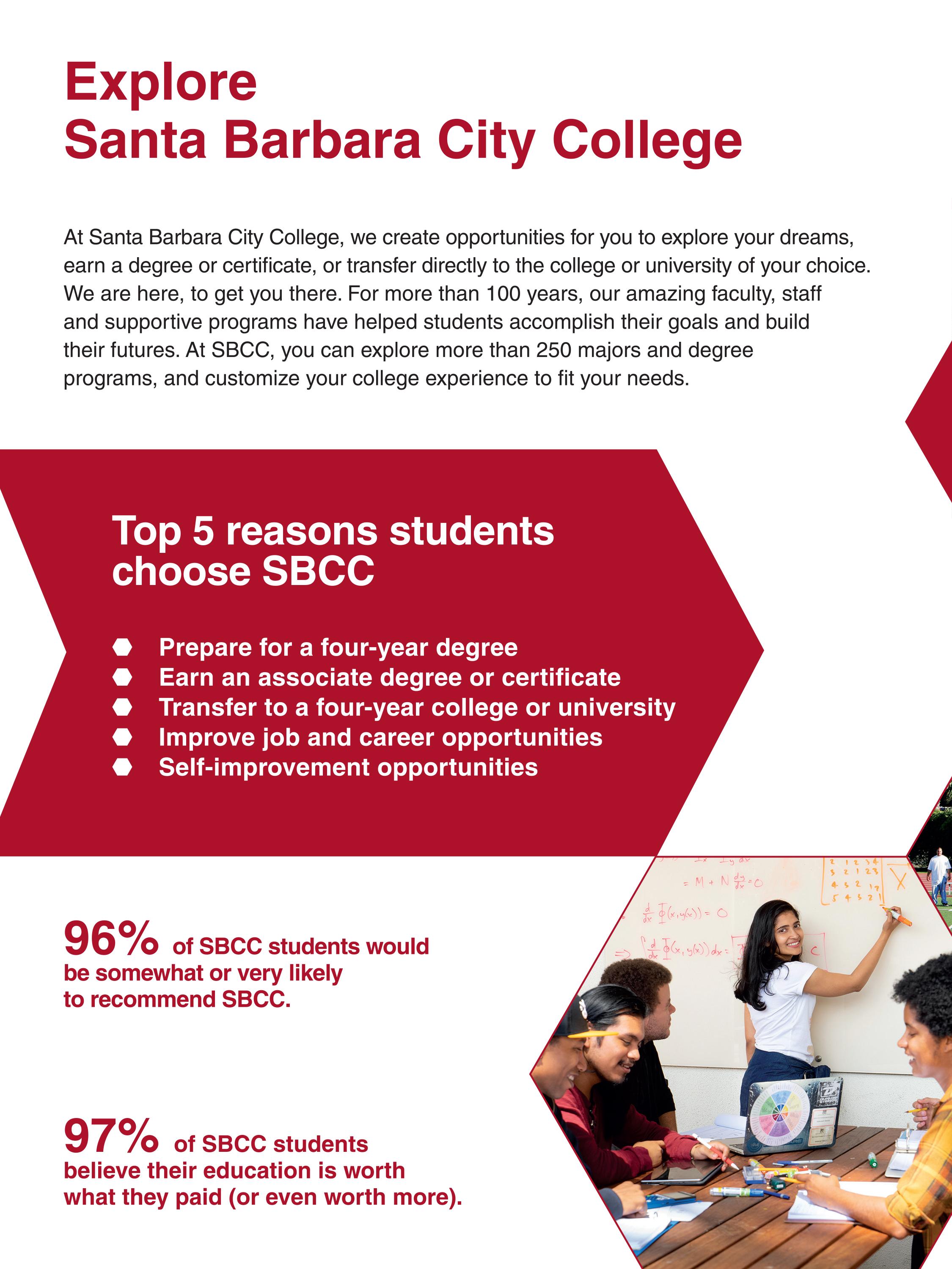 Choose Santa Barbara City College and take classes online or on-campus right across from the beach! Earn a degree or transfer directly to 4-year universities like UC Santa Barbara. Our affordable, award-winning programs and faculty will get you where you want to be!