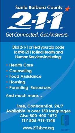Santa Barbara County's 2-1-1 connects Probation clients re-entering the community from incarceration with immediate and long-term services and support! Services are available 24 hours a day, 7 days a week, and in 150 languages. Clients can dial 2-1-1 or text BACKHOME to 898-211 for resource information on Basic Needs, Employment, Transportation, Substance Abuse and much more!