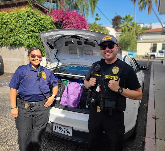 The Santa Barbara County Probation Department is committed to community safety and takes a proactive role in promoting accountability and family wellness. On July 25th, a team of seven juvenile officers from the Santa Barbara County Probation Department performed countywide "Back to School" wellness checks for youth under community supervision to ensure they were ready for the upcoming school year. During the visits, officers checked on families and discussed plans for school attendance. They also handed out care packages filled with school suppliesincluding backpacks and water bottles, toys, blankets, books, speakers, and stuffed animals for all youth in the home. The department visited a total of 38 homes and delivered 82 care packages and backpacks to youth and their siblings.