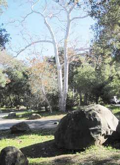 Rocky Nook Park features all of the elements of Santa Barbara County’s natural and humanmade environment and history. The Park’s boulders are the largest remaining geological site of the debris flow that resulted in so much sandstone being located in Santa Barbara. The Chumash lived here for millennia. The water of Mission Creek and surrounding sandstone provided material for aqueducts, the mission water works, and the Santa Barbara Mission. Stonework in Rocky Nook Park dates to the Spanish and Mexican periods. In the nineteenth century, American settlers moved to what is now Rocky Nook Park. Rocky Nook was saved by members of the community, who raised the money for its acquisition and deeded it to the County of Santa Barbara for permanent use as a park. Rocky Nook Park became the second county park in 1928, and the first county park on the south coast of Santa Barbara County. During the New Deal, rock fireplaces were built in the Park by the WPA that remain to this day.