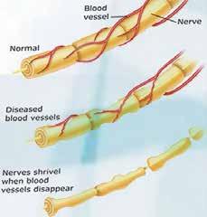 As you can see in Figure 1, as the blood vessels that surround the nerves become diseased they shrivel up which causes the nerves to not receive the nutrients to continue to survive.
