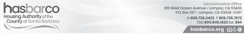 The Housing Authority of the County of Santa Barbara (HASBARCO) will receive sealed proposals for Housing Supportive Services for Buena Tierra (residential building) located at 6021 Hollister Avenue, Goleta, CA, until 2:30 p.m. on September 26, 2023, at 815 West Ocean Avenue, Lompoc, CA, or emailed to shereeaulman@hasbarco. org. Proposals will be held in confidence and not released in any manner until after contract award.