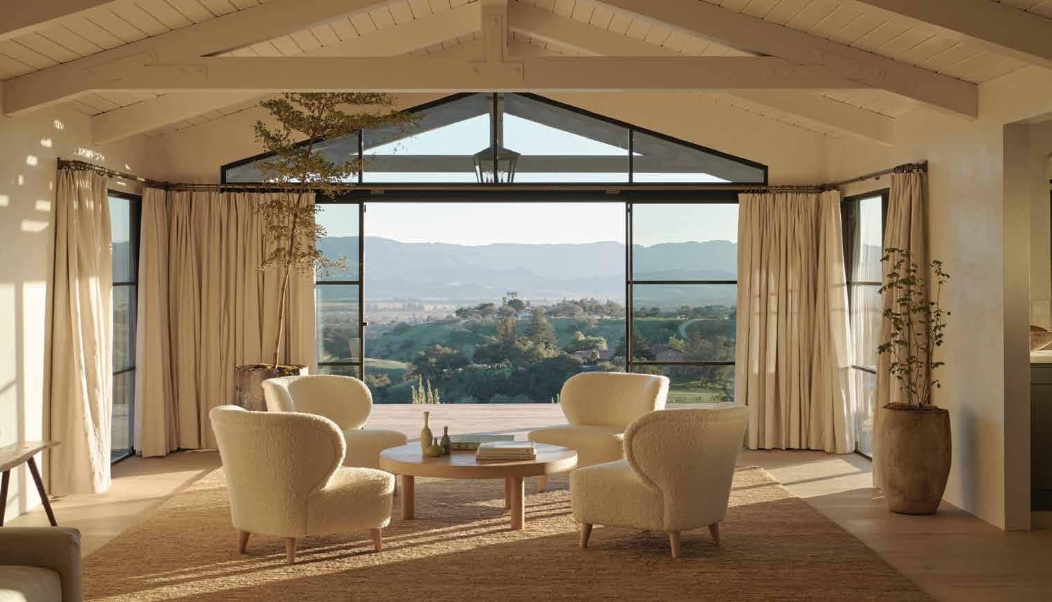 The Jenni Kayne Ranch in Santa Ynez. Located a few hours outside of Los Angeles in the idyllic setting of Santa Ynez, the Jenni Kayne Ranch is the latest full-scale interiors project from the talented team behind the California lifestyle brand Jenni Kayne. Nestled on approximately twenty acres in the coveted Woodstock Ranch community, this entirely remodeled, serene ranch home comes alive through thoughtful details curated by and from today’s most trusted design sources. Featuring breathtaking 360-degree views of the Santa Ynez landscape, the Jenni Kayne Ranch is primed for all forms of indoor-outdoor living with a luxurious pool and spa and gathering spaces suited for year-round entertaining. Grounded in natural textures and neutral tones, the home offers four generous bedrooms all en-suite that look out to stunning scenes of the surrounding California Oaks, an open single-story floor-plan, an eat-in kitchen adjacent to the family room, and all the beauty one has come to expect from Jenni Kayne.